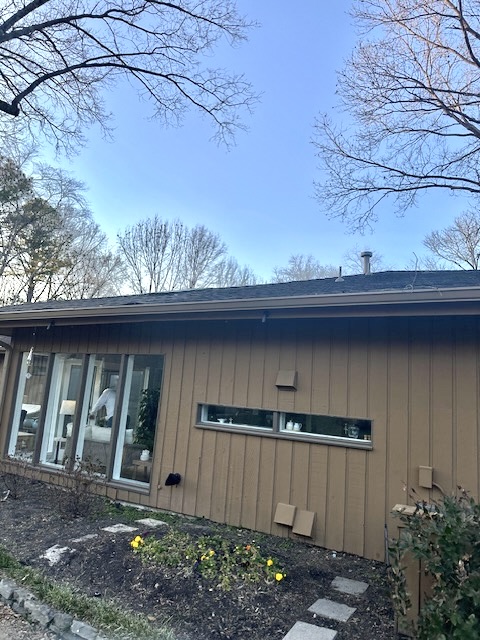 On the roof, we installed new GAF Timberline architectural shingles around the new greenroom panels and the replacement skylights. We used the Barkwood shade to match the aesthetic the homeowner wanted. Installing new shingles around the panels and skylights helped provide a clean transition from roof to glazing and improved the roofline appearance.