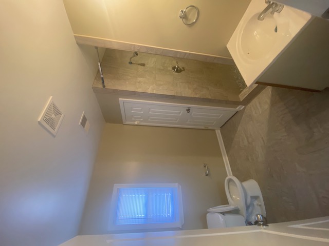 Additional upgrades included new bathroom flooring tile, a new toilet installation, and finishing touches such as a fresh coat of paint on all walls and trim. This renovation resulted in a refreshed, efficient, and visually appealing bathroom tailored to the homeowner’s needs.