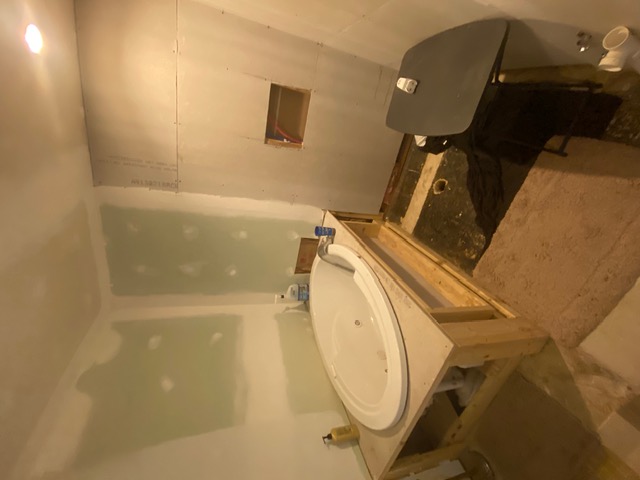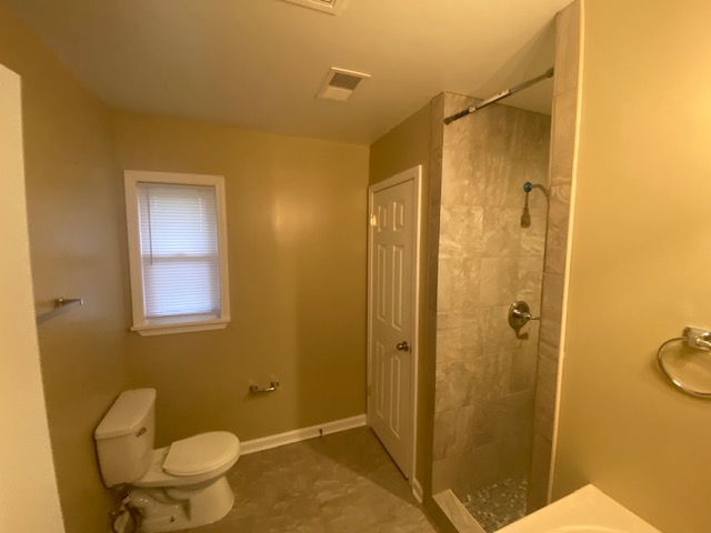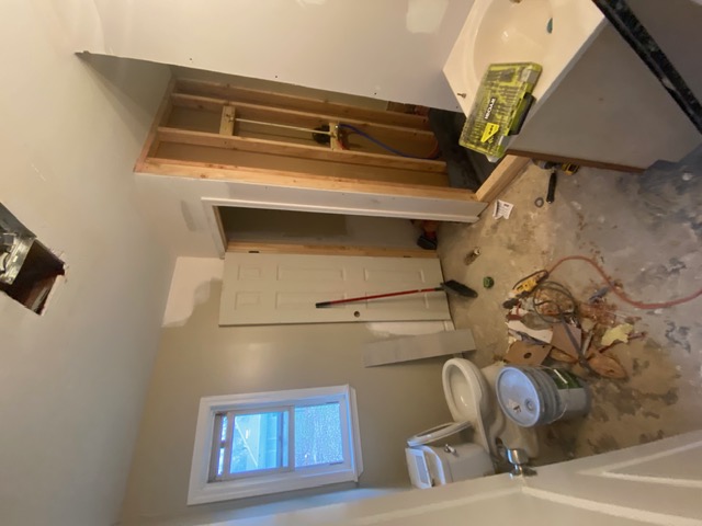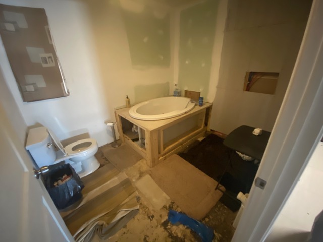 This complete bathroom remodeling project by Phillips Property Solutions, LLC. in Arlington, TN involved a full transformation of the space from outdated to modern and functional. The project began with the removal of an old built-in whirlpool bathtub, allowing for a redesigned layout that included framing and construction of a new linen closet and a spacious walk-in shower.