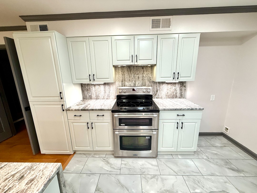 We installed new appliances and handled full appliance installation so the kitchen was ready for immediate use. Throughout the renovation we updated trim and paint throughout the space, giving the room a consistent finish from wall to ceiling to trim work.